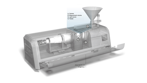 During a dry measurement, the sample material is continuously fed to the measuring process via a funnel and a vibratory feeder, in which the sample feed speed – how much material per minute is moved – can only be increased within rigid margins: The overlapping of two particle images, which coincidently pass the same visual axis of the camera, should be kept as low as possible. With this procedure, each sample particle is only available once for analysis. In order to avoid an influence of the result from possible segregation tendencies, if possible the entire sample amount which was added to the feed system should be processed, especially for samples with a wide particle size span. With dry measuring, particles of approximately 20 µm up to approximately 20 mm can be measured.