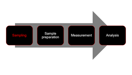 An often-neglected step in sample analysis is sampling (Figure 1). The relevance of correctly performed (representative) sampling is based on the principles of good laboratory practice (GLP) as well as international standards, such as DIN EN ISO/IEC 17025 (standard for laboratory accreditation in the field of testing and calibration). After all, what is the use of a measurement that is correct in itself if the sample is not representative with regard to its basic population and thus reliability could not be guaranteed? Particularly when determining particle size distributions, e.g. by means of static light scattering, sampling is a decisive factor for the success of the measurement.