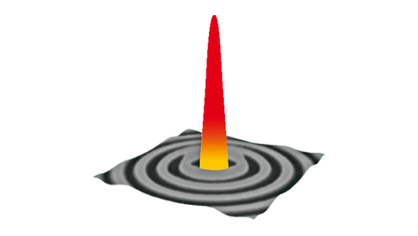 但波前遇到了一个粒子,在它的边缘会有以不同方向运动的新波。由于叠加(干扰)的很多新波,这会在粒子后面生成一个特征衍射模式,此模式是可以用粒子直径来清楚的测定。准确的演变过程的描述是在 夫琅和费理论中。/a>.