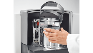 Until now, for planetary mills with one working station the user had to manually adjust the required compensation for imbalance with a counterweight. With the new FRITSCH PULVERISETTE 5 premium line, the imbalance compensation is performed fully automatic – thanks to another brilliant patent by FRITSCH! Also patented is the new grinding bowl clamping mechanism ServoLOCK. No more spindles or screws and instead with more or less effort clamping the bowls into place now simply: lower ServoLOCK handle – CLICK – finished! Thanks to the motor-driven clamping ServoLOCK, the bowl is reproducibly tensioned with a clamping force of 16 kN [~ 1.6 t]. Premium safety, premium fast and premium simple!