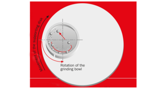 With the planetary movement, the grinding bowl filling is subject not only to the force of gravity, as in the case with conventional ball mills, but centrifugal and coriolis forces further increase the kinetic energy of the grinding parts up to 100 times the force of gravity. At high rotational speeds, the effect of these forces on the grinding parts and the material  being ground produces a great load intensity and grinding performance. The energy transmission density is roughly 10 times that of vibratory mills and 50 times of conventional ball mills3. The grinding result is influenced by many different parameters, especially by the rotational speed of the mill, the grinding time, the ball size, the ratio of the sample quantity to the ball filling as well as the material of the grinding parts.