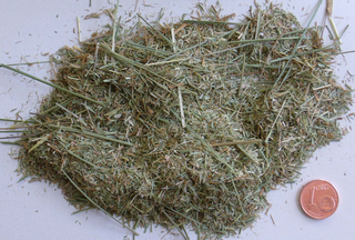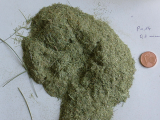 For milling purposes, dried and pre-crushed grass was supplied by the customer. Clearly visible are the name-giving hard blades of grass. The requirement of the task was that the material shall be smaller than 0.2 mm. The prospective customer selected the Variable Speed Rotor Mill PULVERISETTE 14 classic line as the instrument for the job. Complying with this demand, the mill was equipped with a 0.2 mm sieve. The result is not satisfactory. Several blades of grass remained intact in their full length.