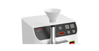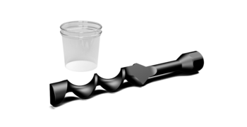 The 100 ml sample cups are available separately for easy and hygienic sampling. A spiral-finned sample pusher is available for stable sample feeding without rebound.
