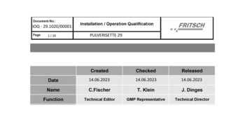 IQ/OQ documentation (questionnaire format - implementation not included) for the independent utilization for the support of instrument qualification in the quality management system for our Mini-Cutting Mill PULVERISETTE 29.