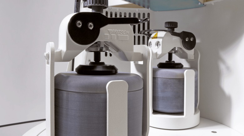 The constant transmission ratio, the regulated rotational speed and precision quartz timing, ensure exactly reproducible grinding results. The Safe-Lock System, which is delivered with a torque wrench, enables simple and safe clamping of the grinding bowls - absolutely risk-free.