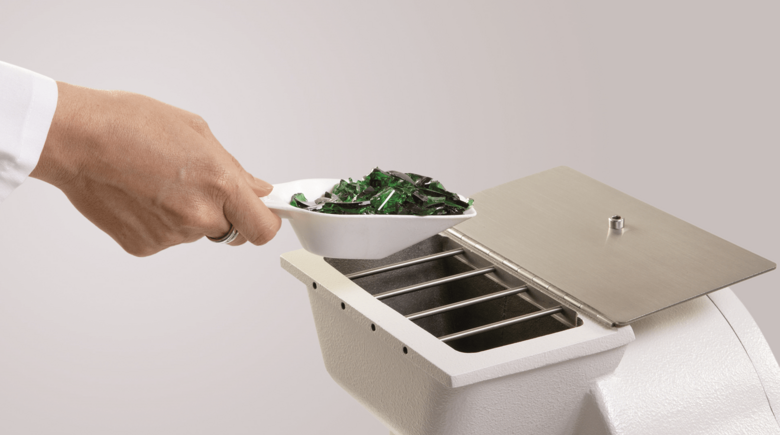 For fast, continuous pre- and fine-grinding particularly of large quantities of coarse material, the combination of the FRITSCH Disk Mill PULVERISETTE 13 classic line and the FRITSCH Jaw crusher PULVERISETTE 1 classic line is the ideal solution. Mounted together onto a rack and connected to each other by a chute, they automatically grind the material from a particle size of up to 95 mm to a final fineness of down to 100 μm – fast, easy and effective in a single step!