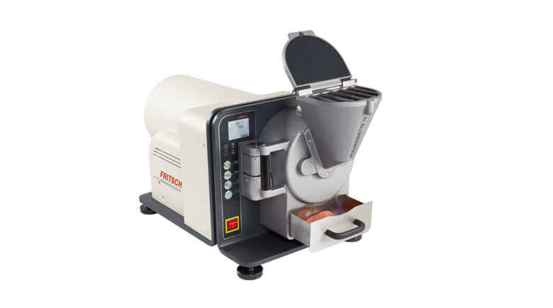 In the Disk Mill, the material to be ground is comminuted by pressure and shearing action between two counteracting grinding disks with coarse interlocking teeth. The ground material automatically falls down through the pre-set grinding gap into the collection drawer. The desired final fineness can be defined reproducibly by simply adjusting the digital setting of the gap width.