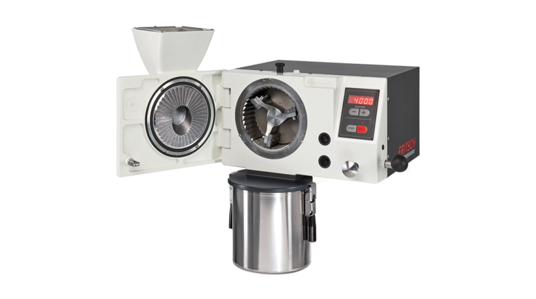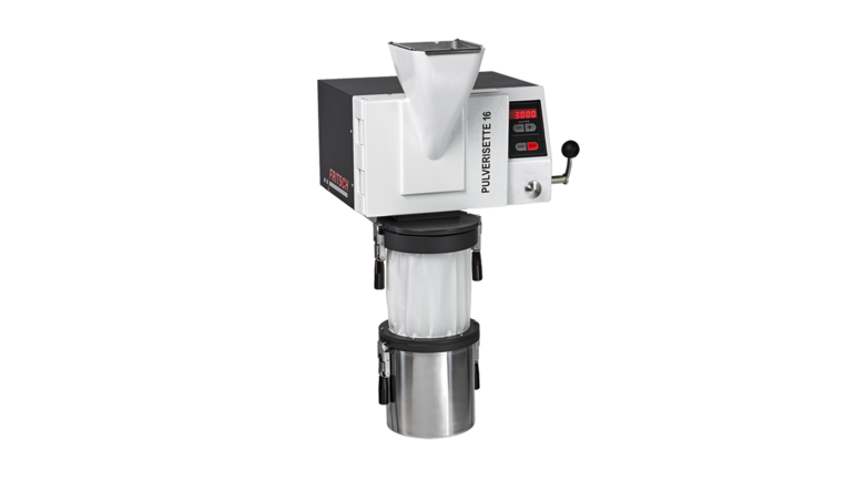 With a freely adjustable rotor speed of 2,000 – 4,000 rpm, the FRITSCH Cross Beater Mill PULVERISETTE 16 is the ideal universal mill for fast and gentle pre-crushing and fine-grinding of medium-hard, brittle materials up to a Mohs hardness of 6 in laboratories, pilot plants and industry.