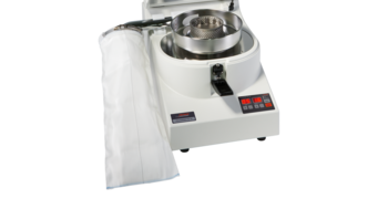 Regardless of the specific configuration of rotor, sieve rings, impact bar or pin insert, the PULVERISETTE 14 is capable of grinding of large quantities with the special conversion kit: Consisting of a special collecting vessel with outlet and flange-mount nylon support sack for easily replaceable paper filter bags. This allows the comminution of sample quantities of up to 1 litre in a single step without the need to open the grinding chamber and empty the collecting pan during the process.