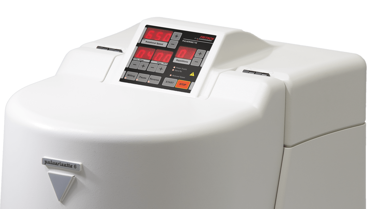 The Planetary Mono Mill PULVERISETTE 6 classic line is a high-performance Planetary Ball Mill with a single grinding bowl mount and practical, easily adjustable imbalance compensation. Your advantage: Particularly easy use and high-energy effect of up to 650 rpm. This ensures a constantly high grinding performance with extremely low space requirements for loss-free grinding results for the comminution of hard, medium-hard, brittle and moist materials, dry in suspension or in inert gas.
